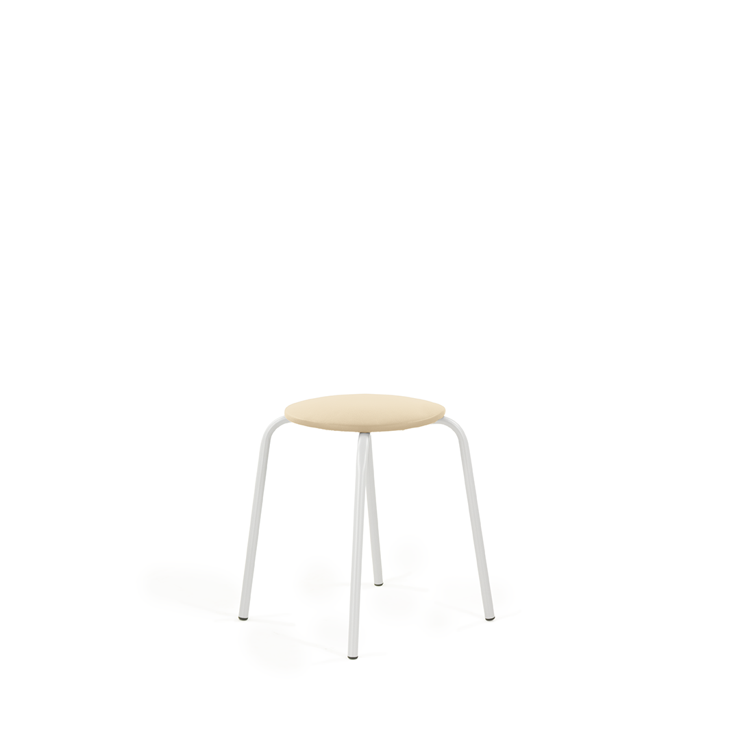 Каркас табурета выполнен из металла, на котором расположено мягкое круглое сиденье.