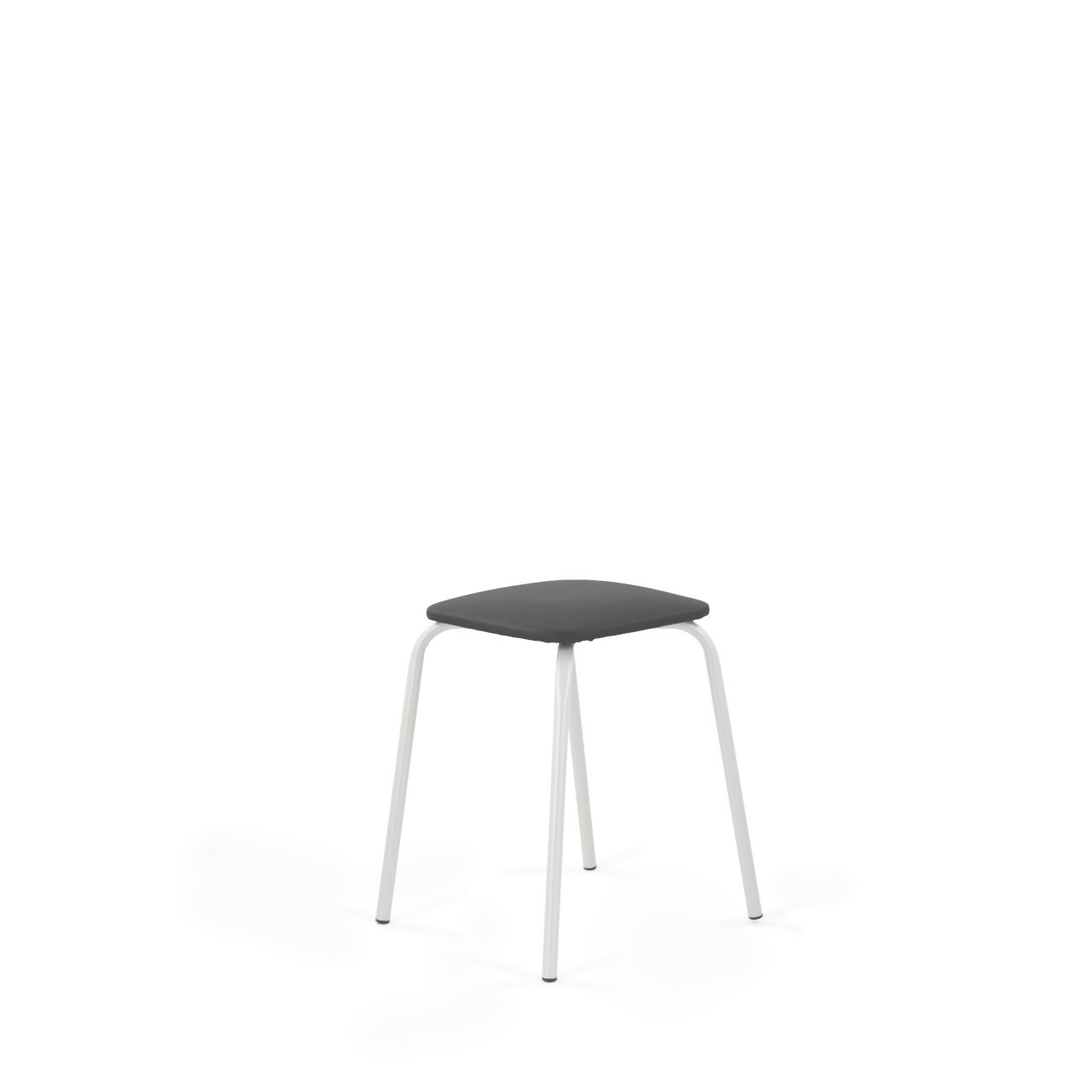 Каркас табурета выполнен из металла, на котором расположено мягкое прямоугольное сиденье.