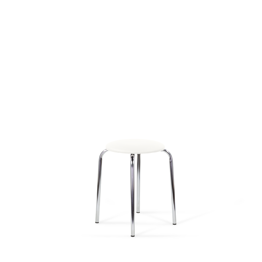 Каркас табурета выполнен из хромированного металла, на котором расположено мягкое круглое сиденье