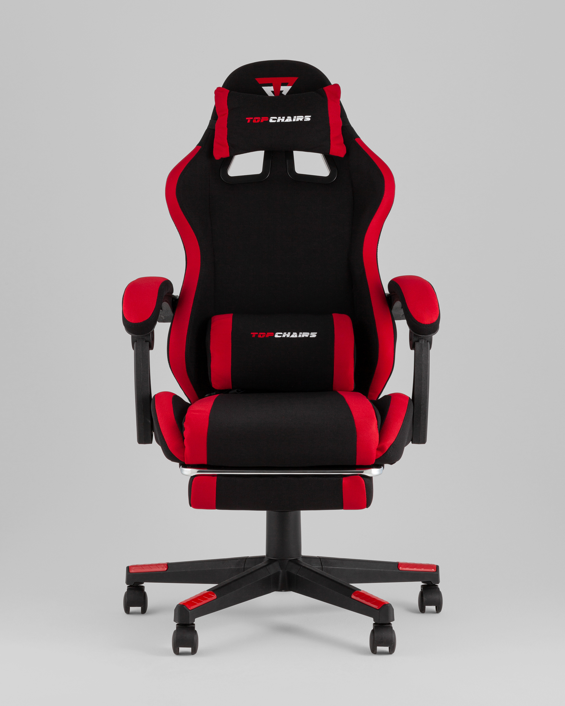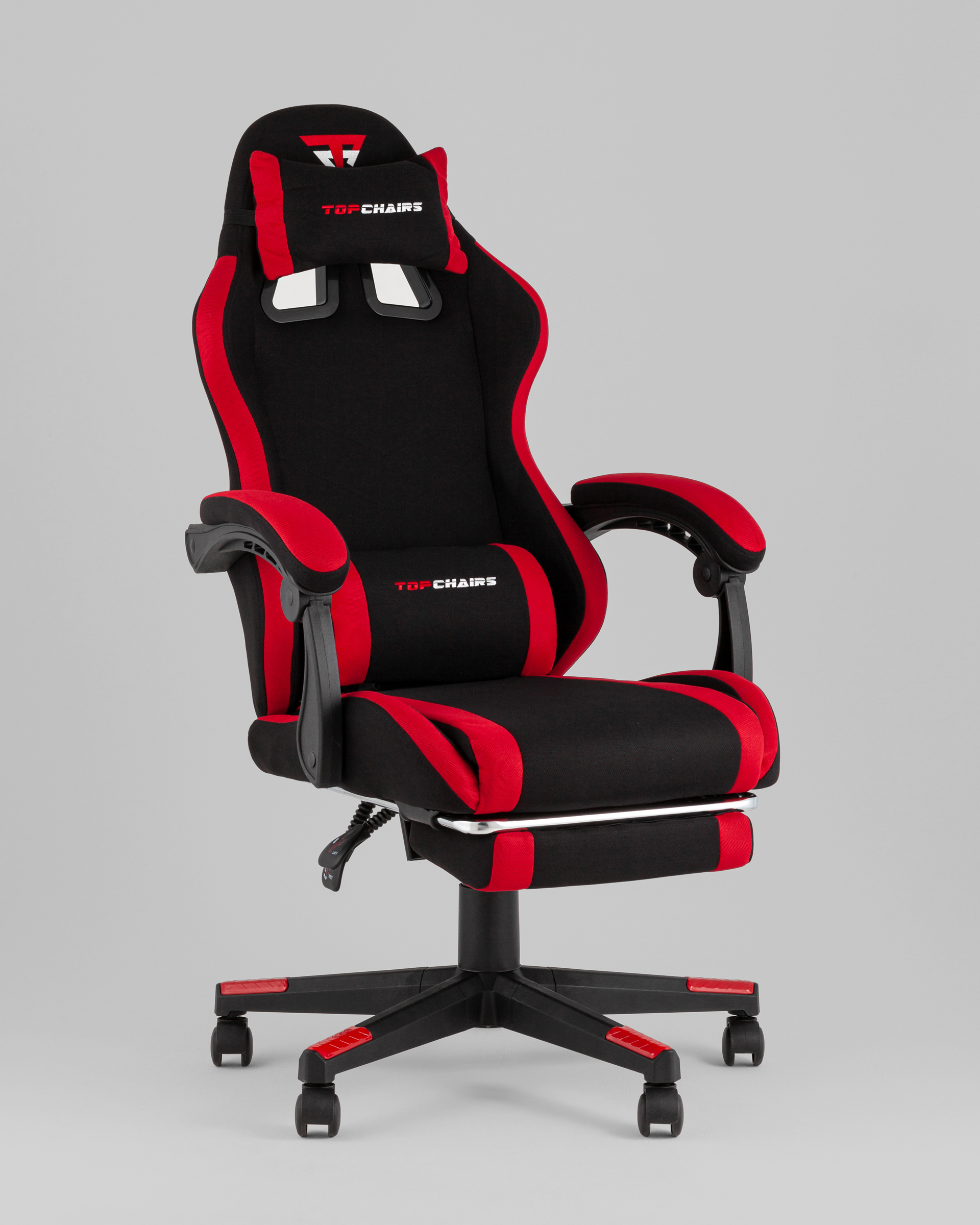 Кресло спортивное TopChairs Prophet с оттоманкой, ткань, черно-красный