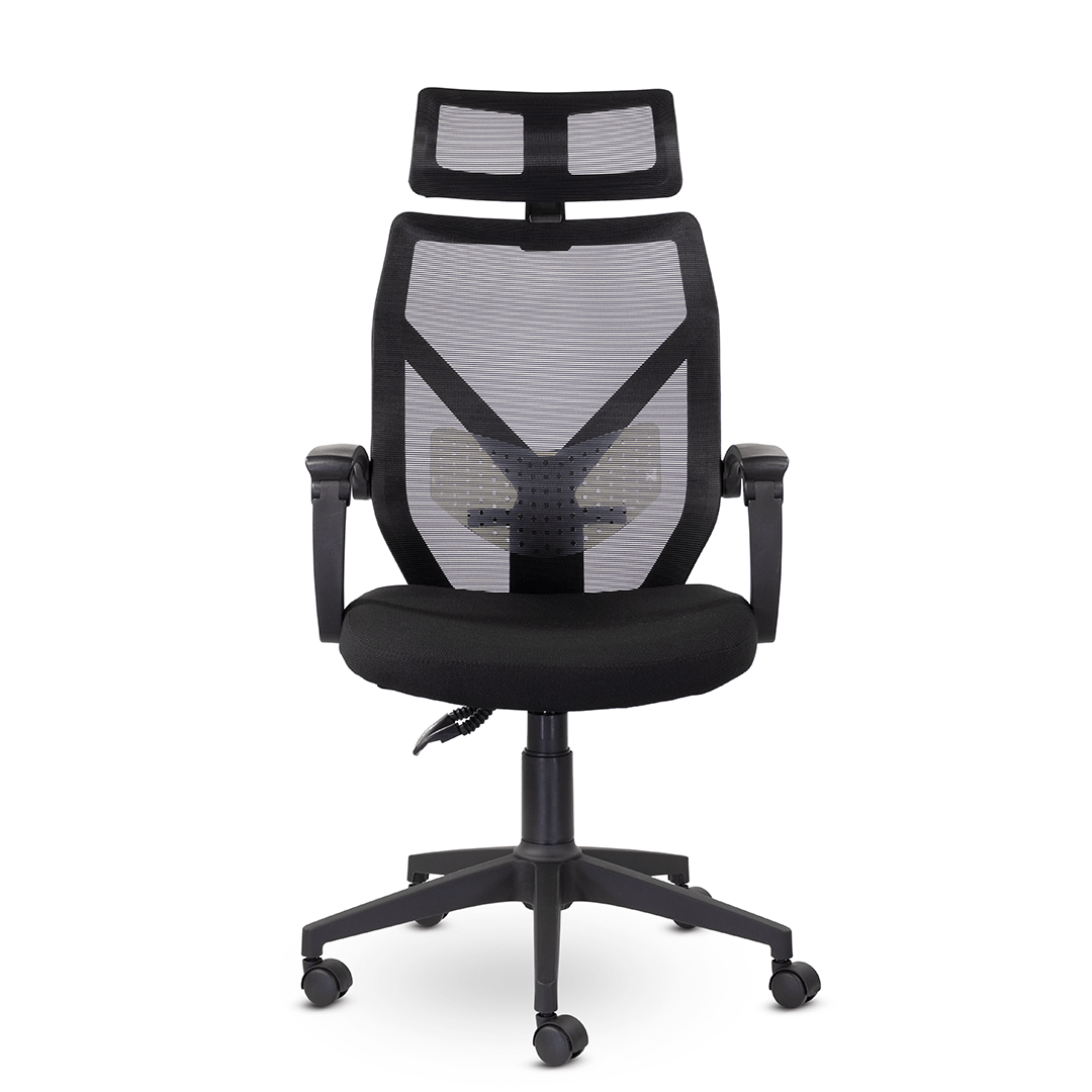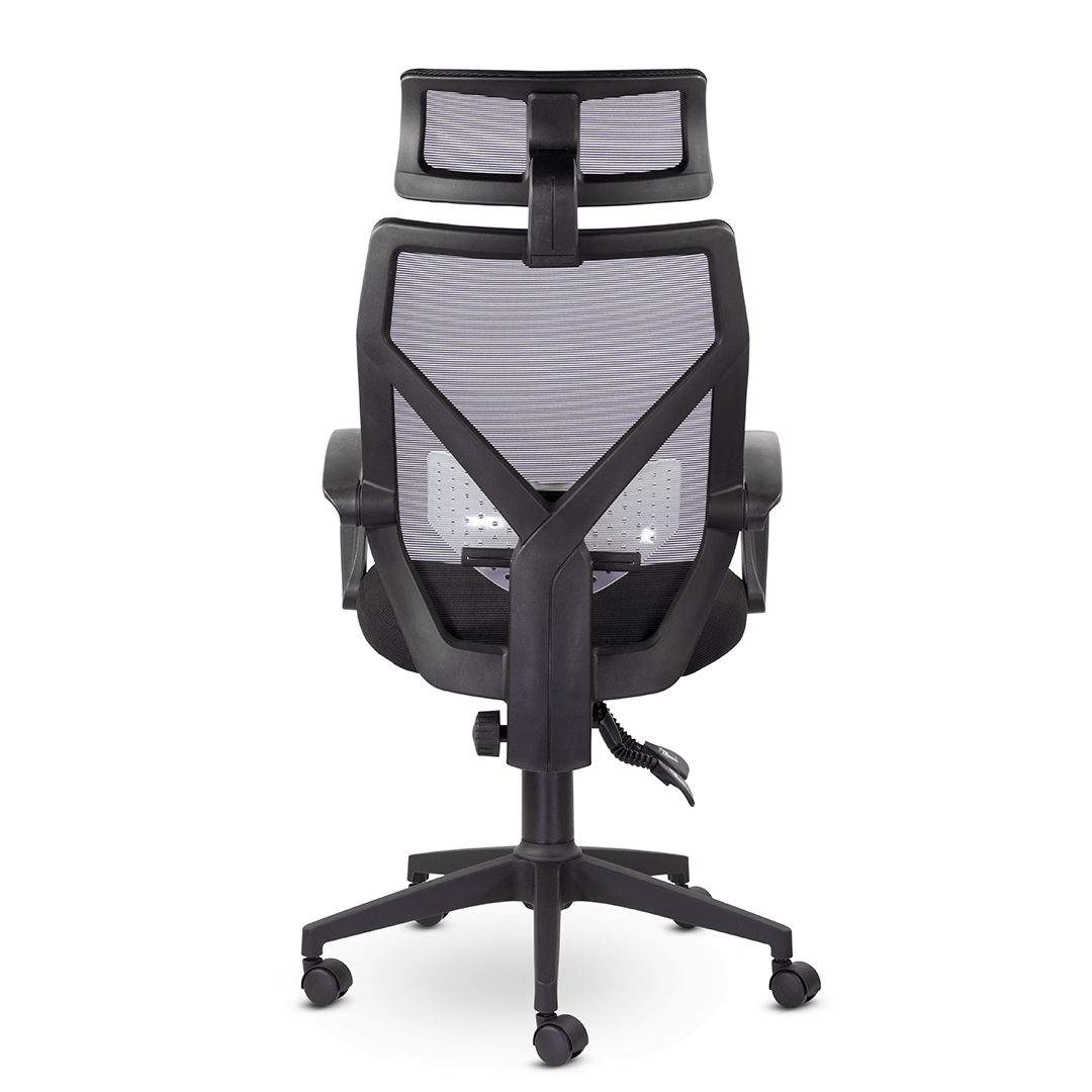 Кресло с уникальной системой трансформации подлокотников при активации механизма качания 1/3. Дополнительный комфорт в зоне поясницы сделан за счет регулируемого по высоте блока из прозрачного пластика. Изменение наклона и высоты подголовника способствует удобному расположению в кресле.